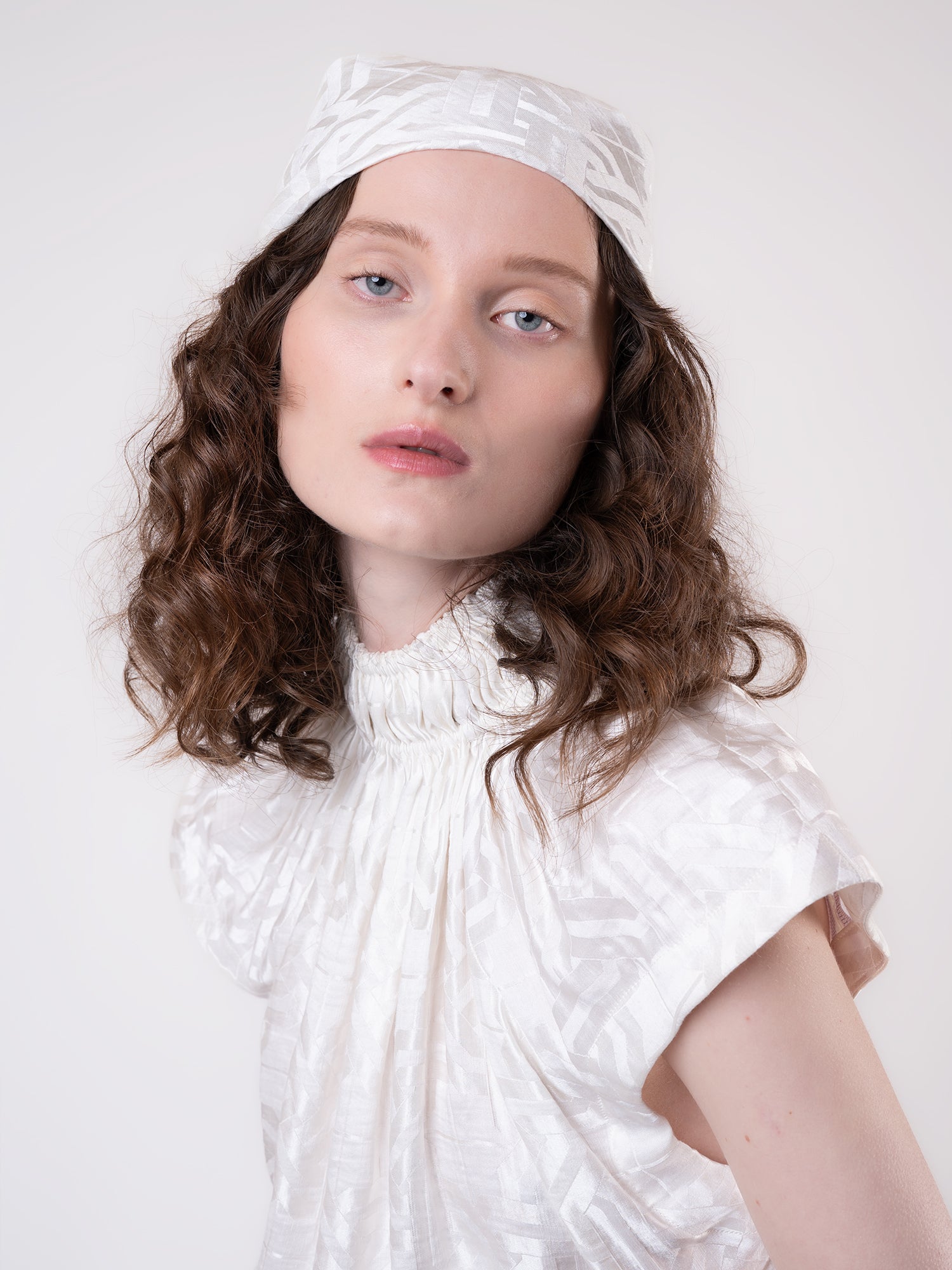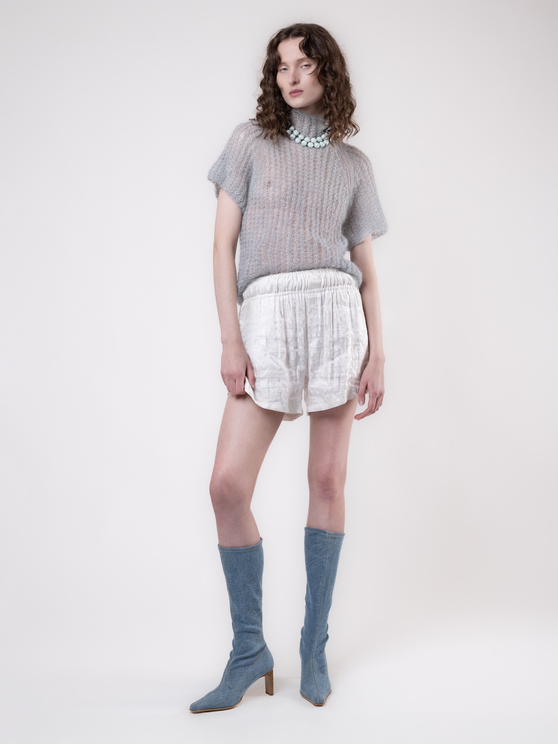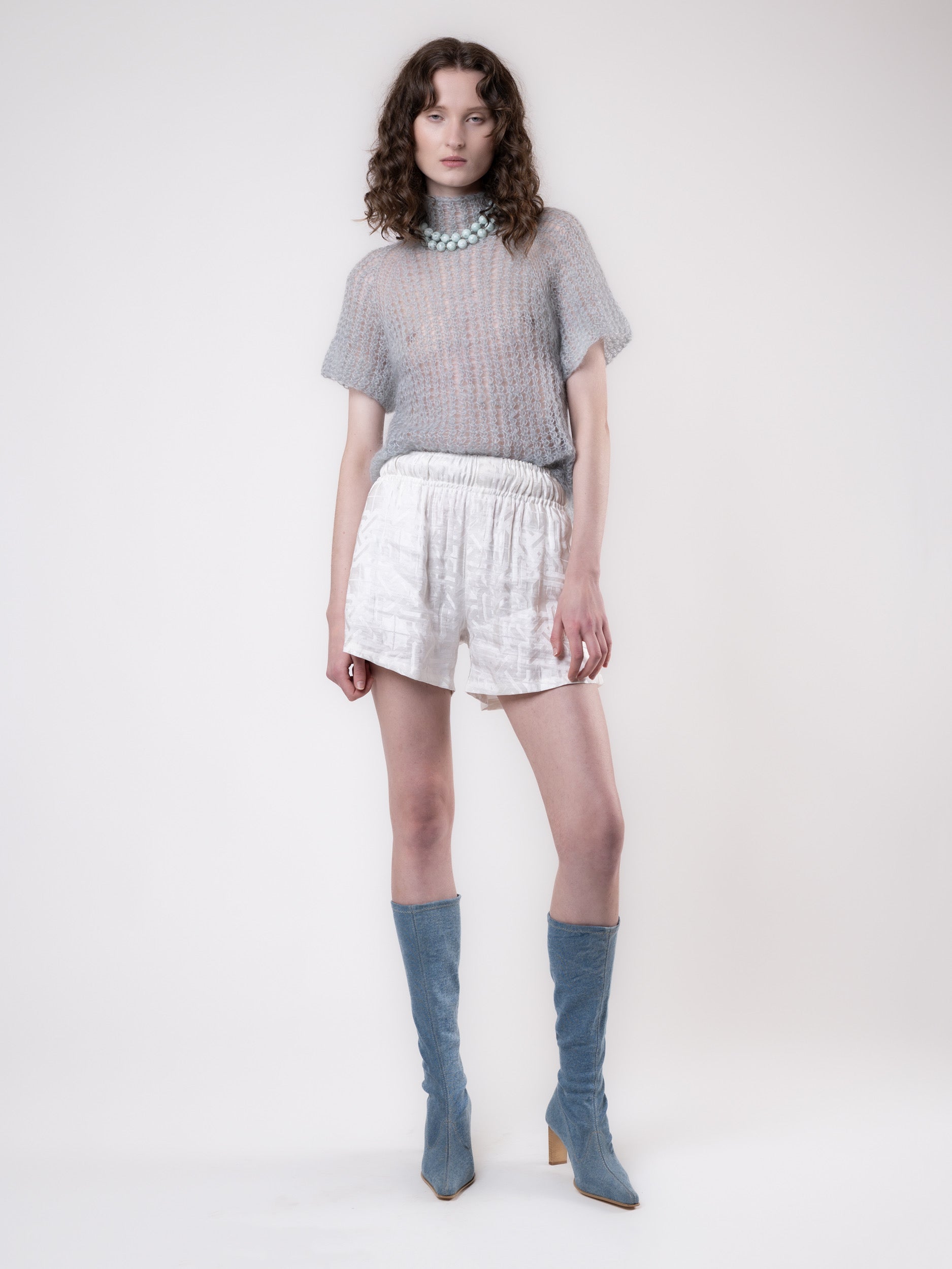 Clouded Silver Top - White Jacquard