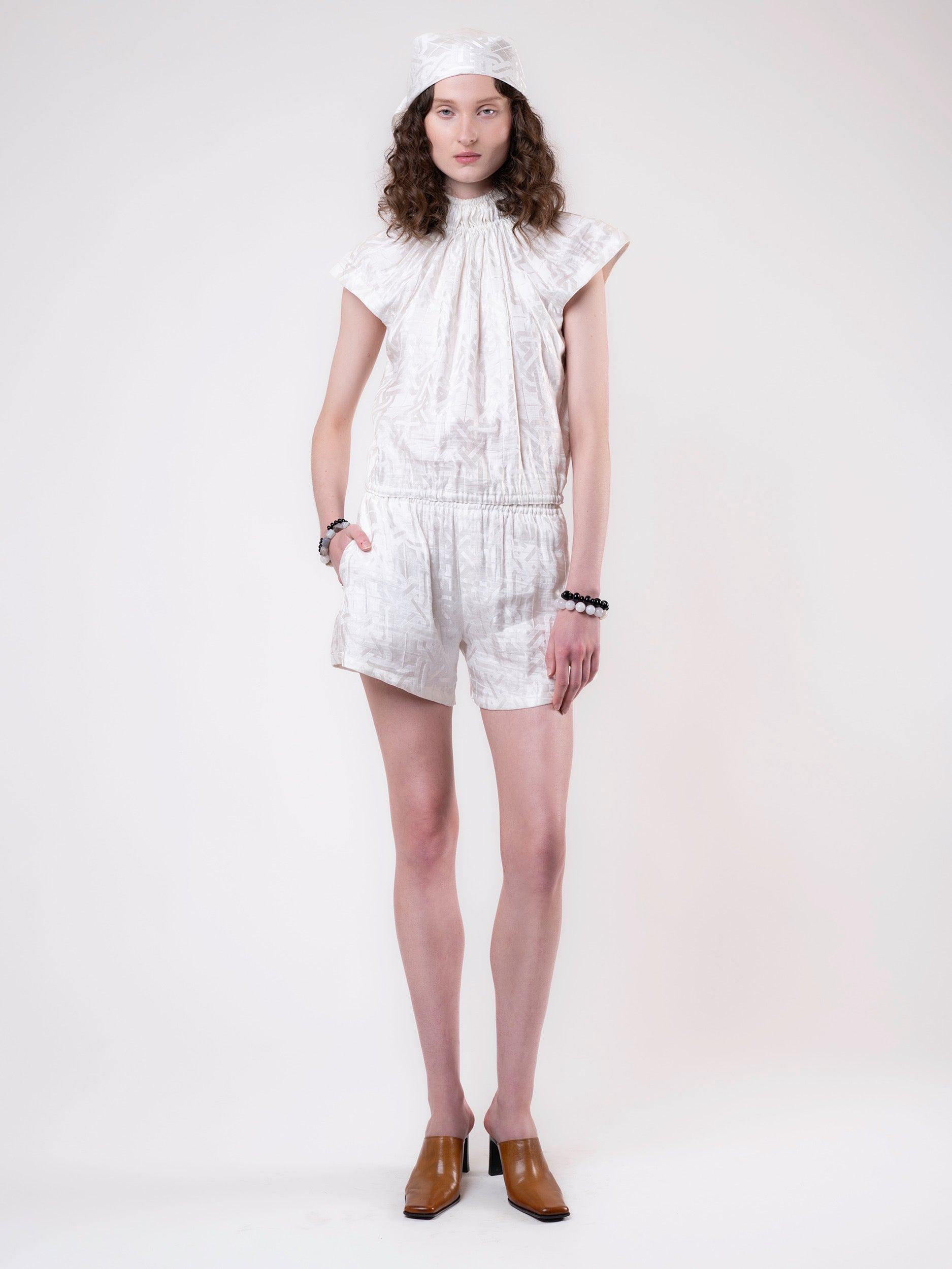 Clouded Silver Top - White Jacquard