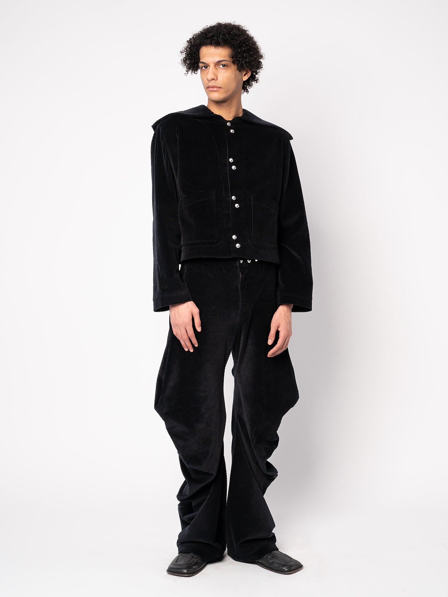 A gorgeous little jacket in a butter soft corduroy, with an eye catching triangular collar and signature buttons. It is made from deadstock corduroy from Dries Van Noten and it will only be produced in very limited numbers, due to the scarcity of the fabric. It features a sharp oversized triangular collar, diagonal patch pockets, and rounded snaps placed in pairs diagonally. Made in our studio by skilled hands.
